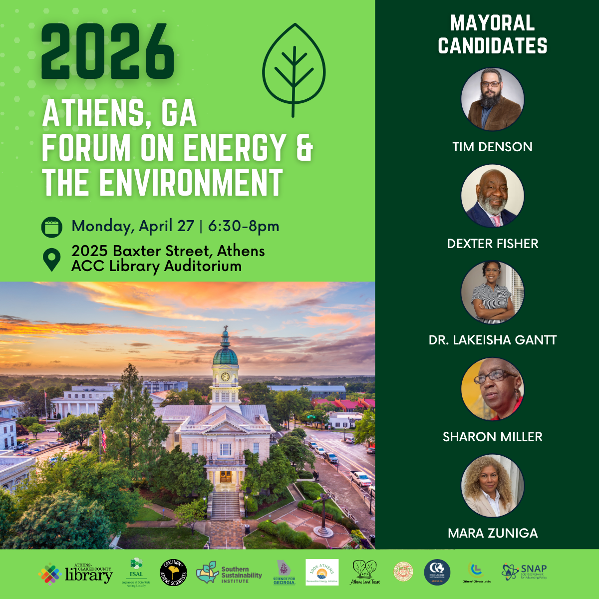 Save the date for the Athens Mayoral Candidate Forum on Energy and the Environment.