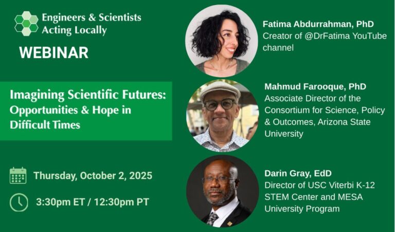On October 2, 2025, ESAL hosted a virtual panel event titled “Imagining Scientific Futures: Opportunities & Hope in Difficult Times.” This event featured panelists: